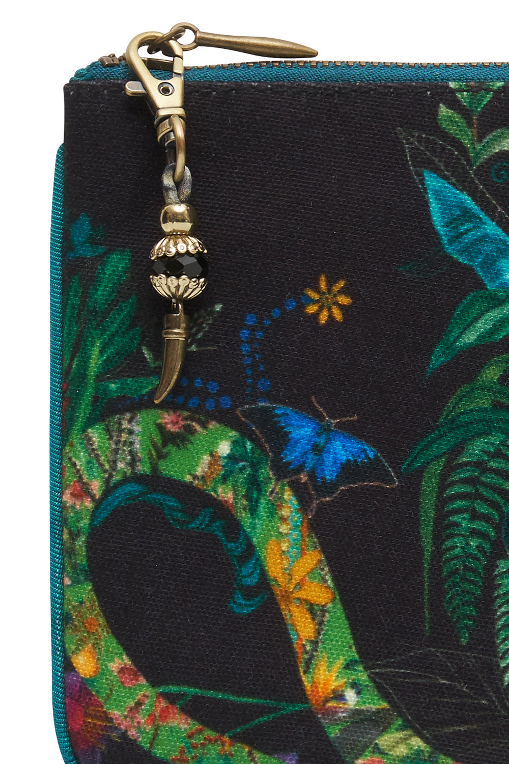 Set against a hypnotic rainforest canvas, the River Cruise Coin and Phone Purse draws inspiration from a dusk river cruise along the Daintree. This printed purse features a charming tassel, parrot clip, internal zip pocket,