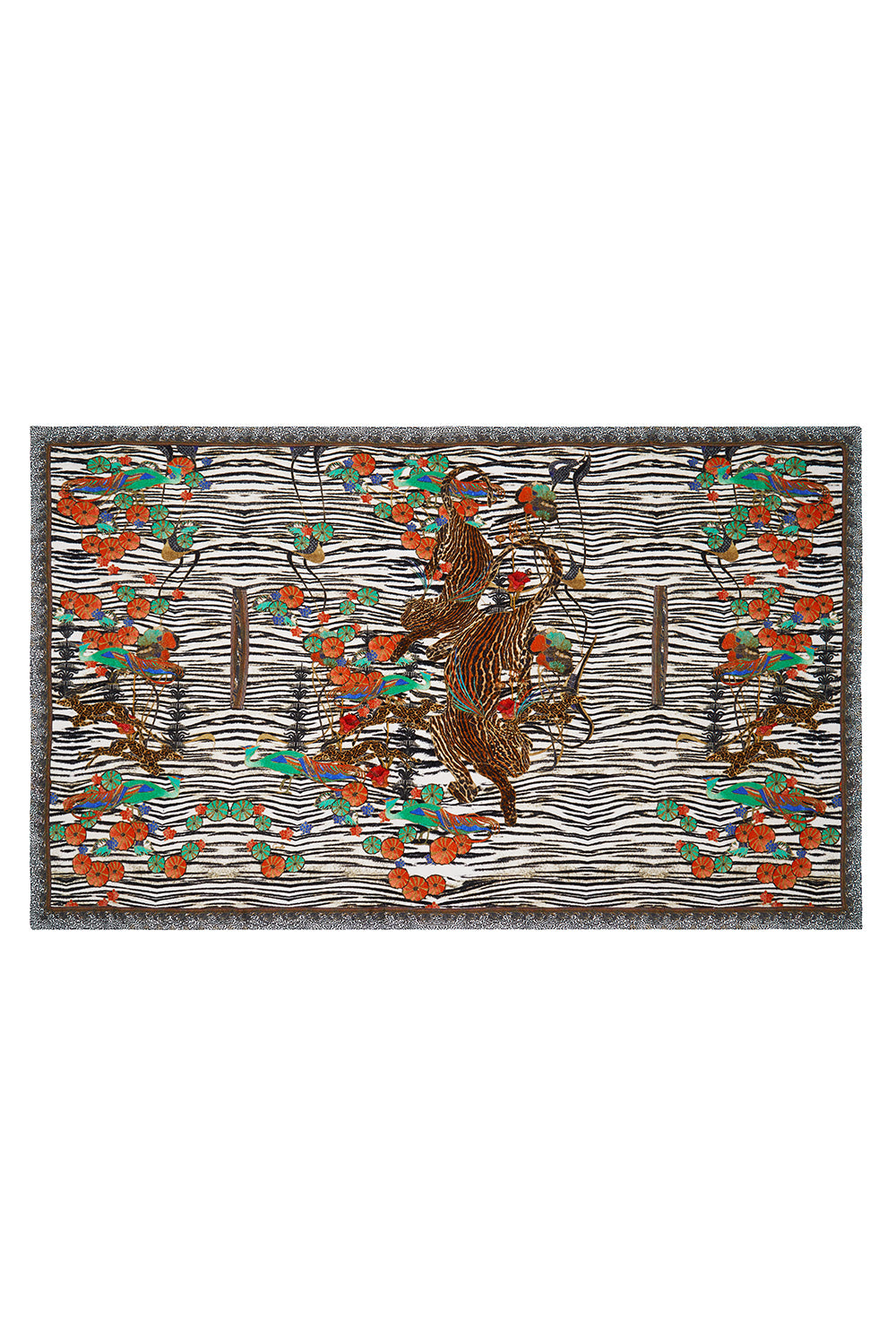 A classic beach side bring along reimagined, the Cosmic Conflict Poncho Towel is a sun chaser’s dream. Crafted with a soft 100% cotton printed Terry Towelling that depicts a cosmic conflict between Persian folklore against a poetic cream and floral canvas, this vibrant towel is designed with armholes for easy wear and a striking contrast band. As essential for making a statement by the water.