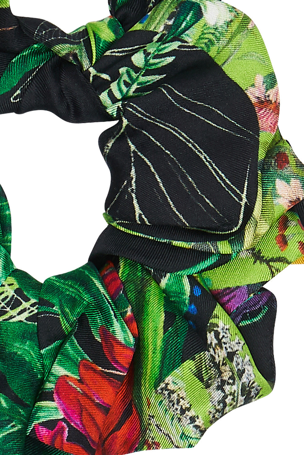 Celebrating memories from a boat cruise at dusk along the Daintree River, the River Cruise Scrunchie welcomes striking hues reminiscent of a Queensland rainforest. This silk hair tie features a practical tie, snake print and digitally printed silk twill.