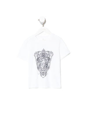 Crafted in a super soft pure cotton, the Midnight Pearl Boys Short Sleeve T-Shirt is a dazzling white tee adorned with a striking pirate motif. Inspired by adventure on the seven seas, the relaxed fit