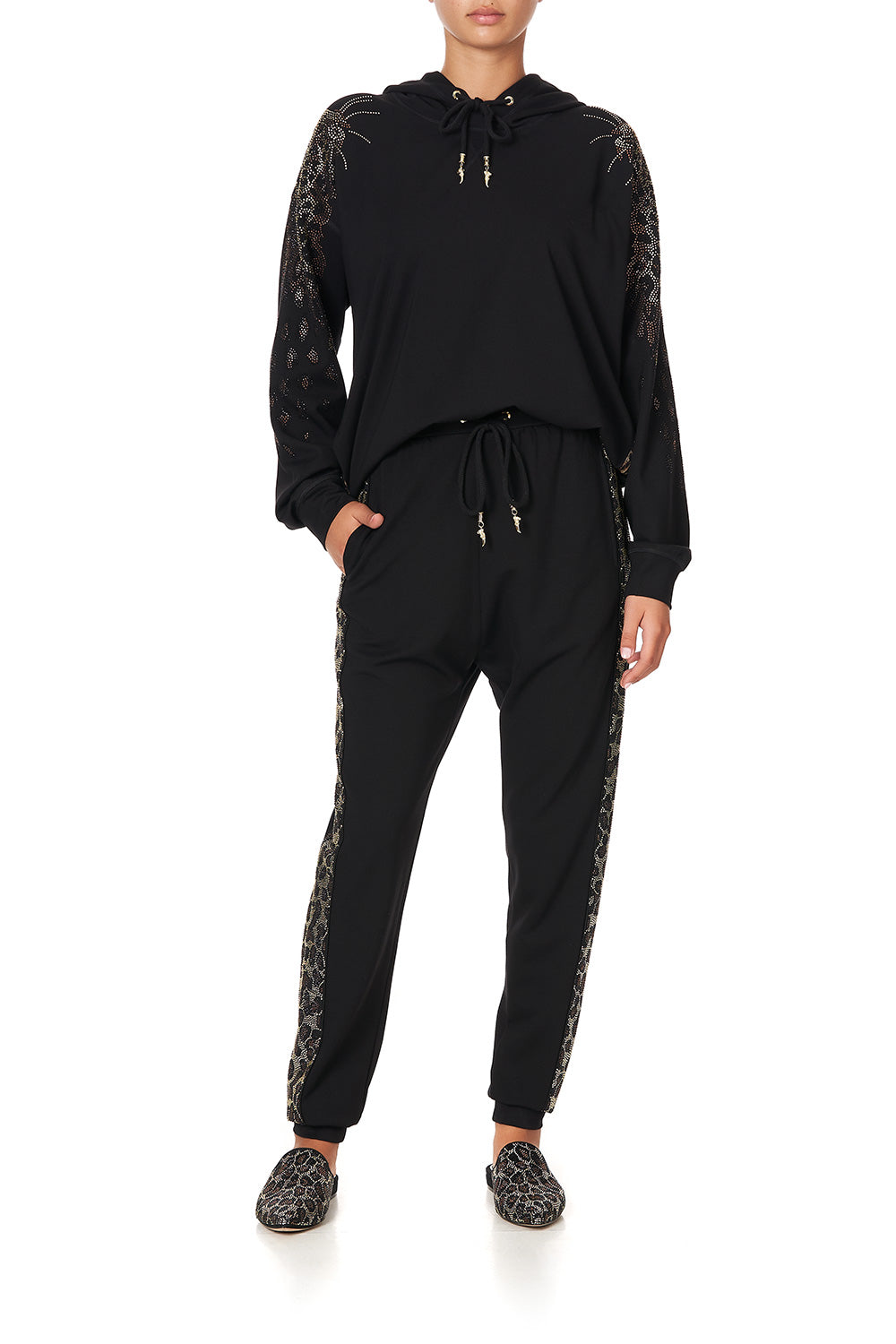 A luxe legging that winks to the exuberance of the 1960s, the Abingdon Palace Side Panel Pant evokes images of the decadent interiors of the iconic Biba Boutique from which it takes its inspiration. A key base layer for winter for work to weekend revelries, these statement leggings are riveted with ornamental crystal detailing along the side seams, whilst kept tastefully restrained at the front and back. The black knit hugs your curves comfortably with a ribbed waistband and cuffs to ensure the perfect fit. Endlessly versatile, these statement leggings couple beautifully with complementary prints from this season for seamless layering opportunities.