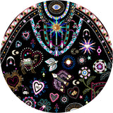 Designed in Australia, The Nubian Nights A-Line Gathered Panel Dress awakens the artistry amidst the Nubian Village at nightfall, accenting a starry night adorned with vibrant embroidery motifs and symbolic depictions. Lovingly handcrafted, this CAMILLA