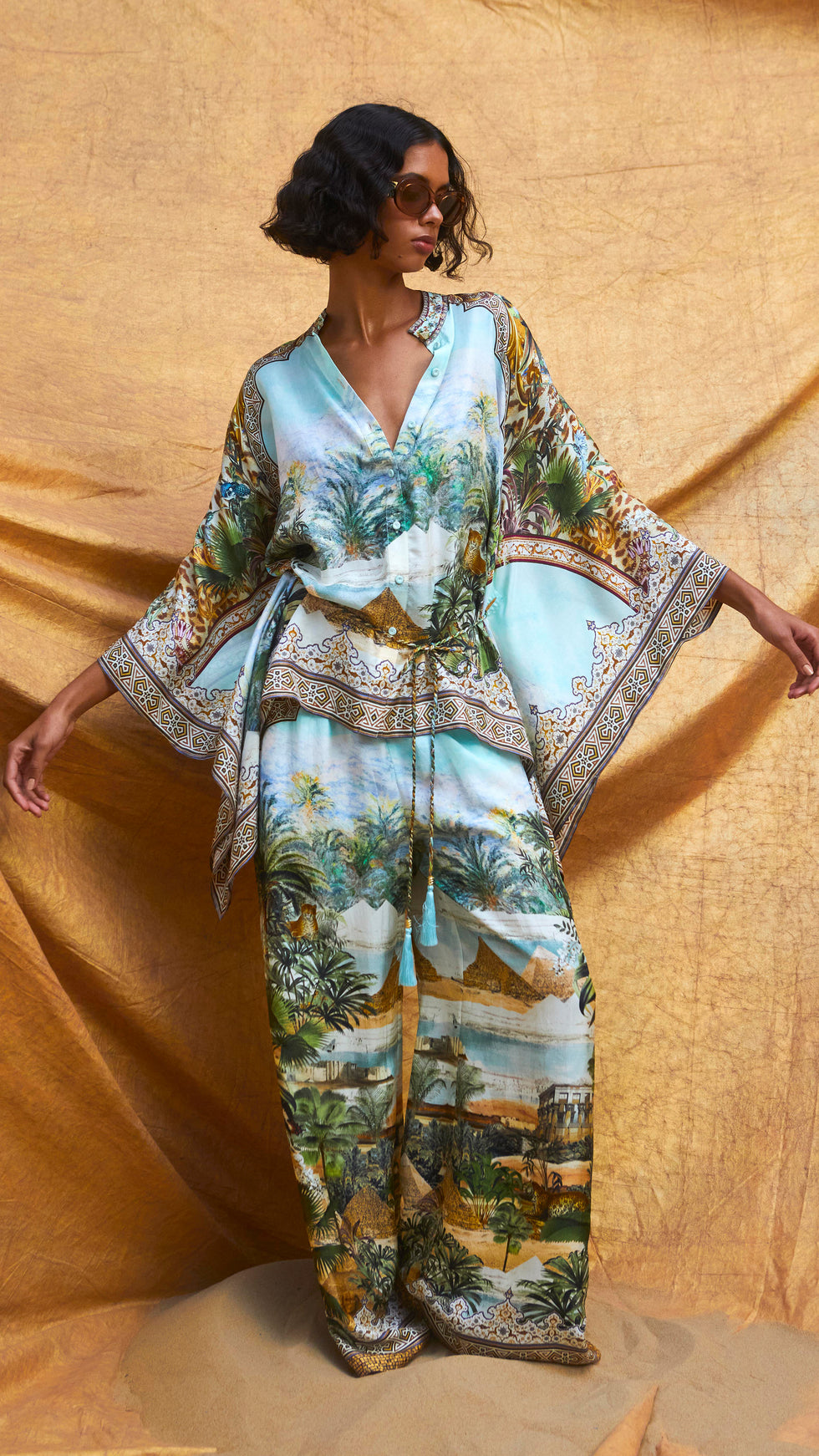 Designed in Australia, The Views Of The Valley Straight Leg Pant is a celebration of the majestic architecture of Egypt’s grand palaces and the verdant beauty of its surrounding valleys. Lovingly handcrafted, these luxury silk