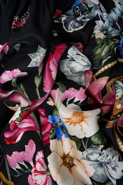 Designed in Australia, The Midnight in Monserrate Tie Front Blouson Sleeve Layer celebrates the lush gardens and eclectic nineteenth-century architecture under an exsquisite midnight sky. Lovingly handcrafted, this lavish tie-front blouse features full-length blouson sleeves with elasticated hems and a relaxed fit, creating an effortlessly chic silhouette.