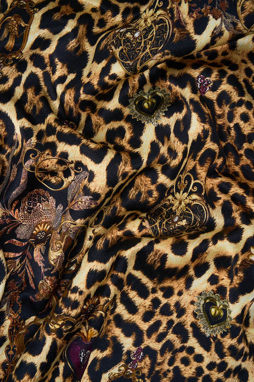 Designed in Australia, The Saints And Sisters Gathered Jersey One Shoulder Dress celebrates Portugal’s architectural grandeur with a touch of the wild—leopard print meets sacred artistry, blending nostalgia and wanderlust in every hand-illustrated design. Lovingly