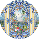 Designed in Australia, The Wall To Wall Wonders Long Sleeve Tiered Short Dress captures the grandeur of Queluz Palace, with soft blues and golden yellows of Azulejo tiles, blending history and artistry in a panoramic