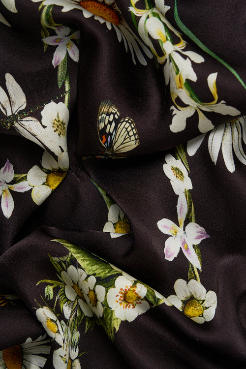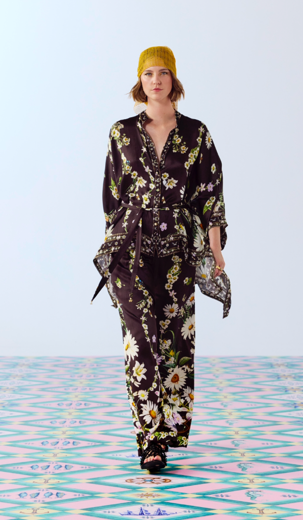 Designed in Australia, the Dish It, Daisy Straight Leg Pant bends to the charm of brown and daisy motifs. Multi botanicals and intricate textiles evoke the warmth of meadow-kissed nostalgia. Lovingly handcrafted, these luxury silk