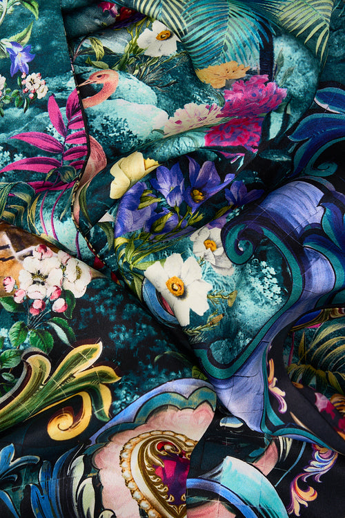 Designed in Australia, the Basked In Baroque Button Through Scarf Blouse celebrates the vivid contrasts of Igreja Matriz De Santa Maria. Painterly prints reflect its dynamic artistry, steeped in timeless energy and colour. Lovingly handcrafted, this blouse features a relaxed off body fit with a hip length cut. It is decadently detailed with a front button closure and separate tie belt, combining effortless style with a touch of allure.