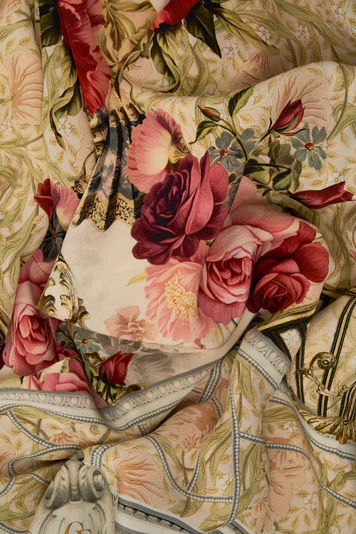 Designed in Australia, the Meet Me At The Majestic Button Front Frill Dress draws inspiration from the Majestic Café. Soft pinks evoke a romantic allure, capturing the essence of its storied prints. Lovingly handcrafted, this CAMILLA silk dress is ornamented with a fit-and-flare silhouette, flowing into a double ruffle mini length hemline. The sumptuous mini dress features a V-neckline and playful blouson sleeves that radiate femininity.