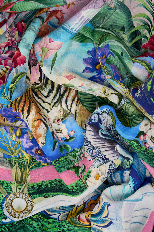 Designed in Australia, the Spirit Of Santa Maria Oversized Pocket Tunic celebrates the vivid contrasts of Igreja Matriz De Santa Maria. Painterly prints reflect its dynamic artistry, steeped in timeless energy and colour. Lovingly handcrafted, this luxury CAMILLA silk shirt boasts a generous oversized fit throughout the body that flows with high-low features and curved hemlines. With short sleeves and patch pocket details, this lavish silk blouse exudes opulence.