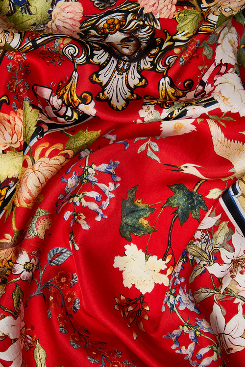 Designed in Australia, The Lisboa Luxe Strappy Dress with Twist Front unveils an oasis where cranes soar among lush ferns, intricate tilework, and dreamlike ceramics—a soft crimson sanctuary, each detail whispering stories of wonder. Lovingly