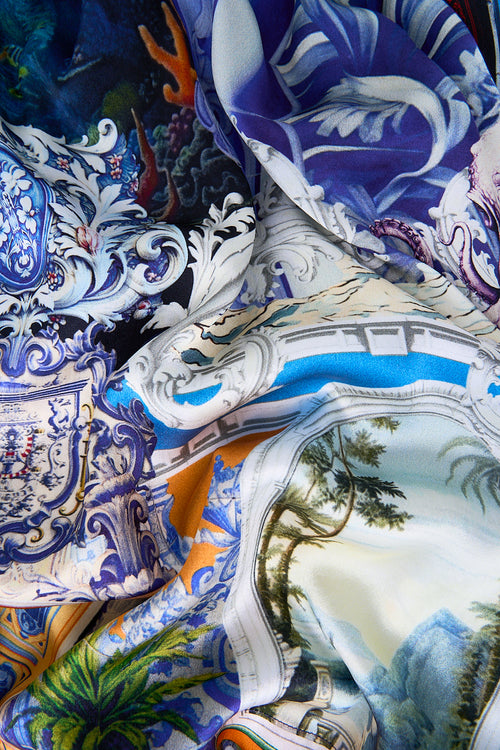 Designed in Australia, The Song Of Saint Anthony Ruffle Hem Halter Short Dress embarks on a fishing trip through Lisbon’s coastal charm, where hand-drawn creatures embody the spirit of the Saint Anthony Festival—oceanic and celebratory.