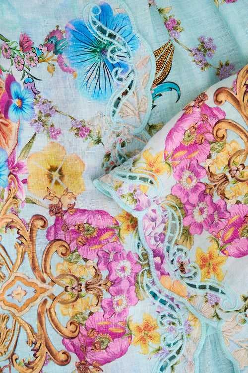 The Bazaar Blooms Small Canvas Clutch is a handcrafted silhouette designed by our in house artisans. Reimagined in an exclusive limited edition print, meticulous artisan detail meets our signature canvas clutch as finishings incorporate contrast piped edges, meticulously placed crystal embellishments, zip top enclosure and a custom made parrot clip. Internal pocket and generous main compartment keep treasures stored in style.