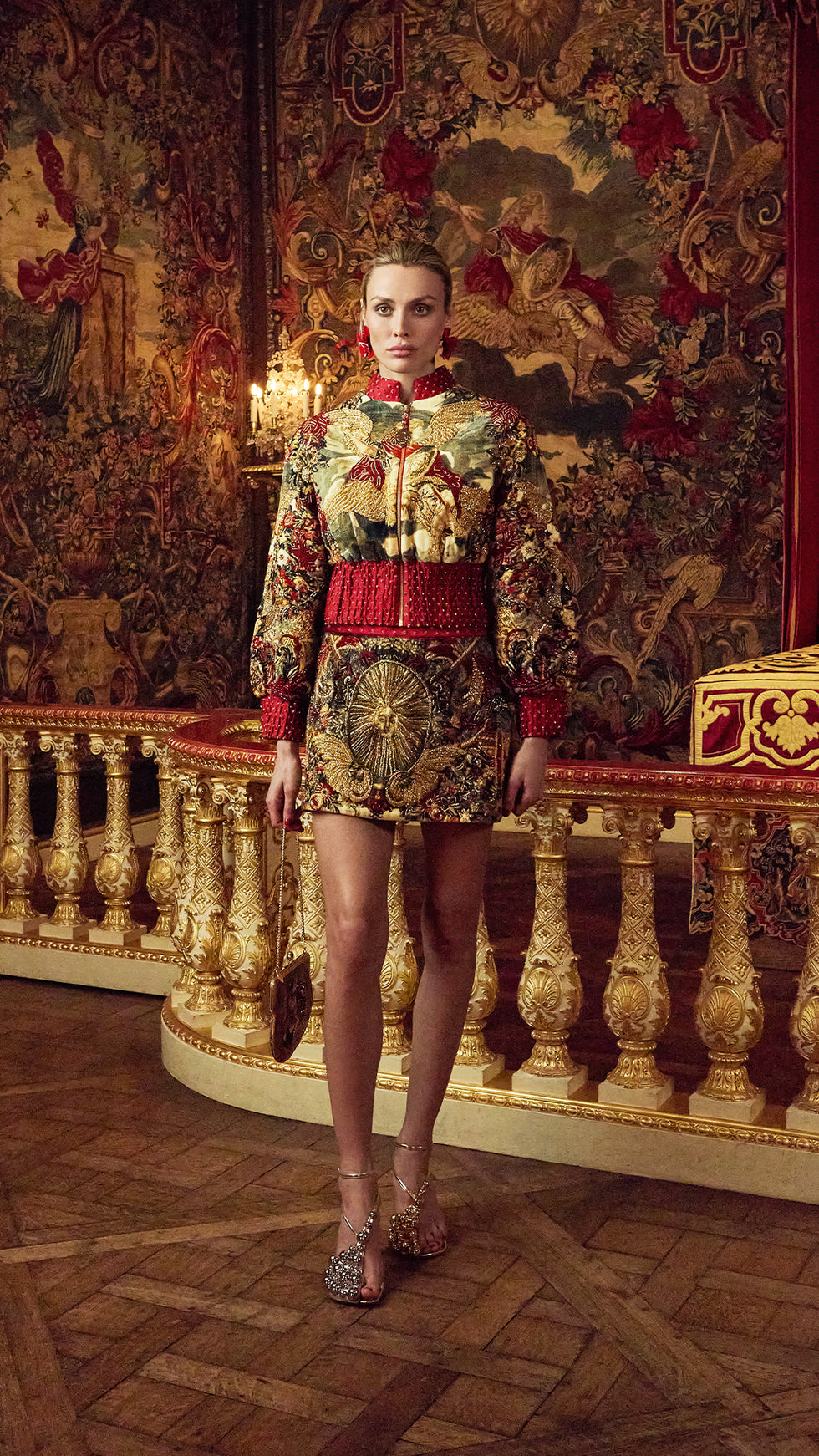 The Meet Me At The Met Open Back Gown With Front Split is a wearable artwork from The Met x CAMILLA collection.It draws inspiration from a 17th-century embroidered French tapestry belonging to a larger set of The Met's textiles representing the seasons and elements.
